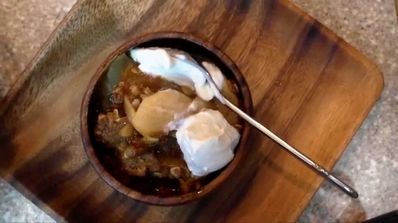 • Let cool slightly before serving. Top portions with sour cream (my preference), slightly sweetened whipped cream or vanilla ice cream, depending on how sweet you like things.