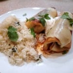 Your filling choices on these chicken chimichangas are limited only by your imagination, but feel free to make the kind I made. It was really tasty. Do take the flour tortillas out of the fridge at least half an hour before cooking so they have a chance to come to room temperature and be a bit more pliable.