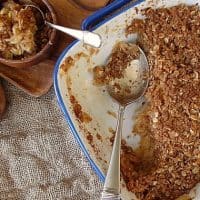 Spread the streusel evenly over the apples and bake for 45 minutes to an hour, or until the streusel is golden brown and the apples are bubbling all over.
